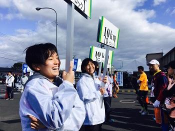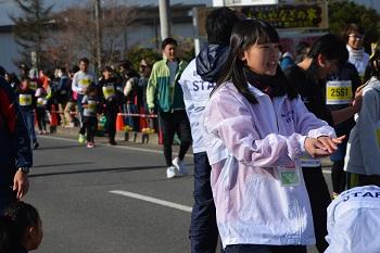 □初めてマラソンのボランティアでした。次々と走ってくる選手に、飲み物を準備するのはとても大変でしたが、楽しみながらとてもいい経験になりました。選手が走ってきた時に辛い中でも「ありがとう、いただきます」と当たり前のように言う様子に、わたしもがんばって応援しなきゃ!という気持ちになりました。