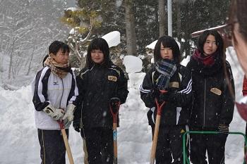 □最初、雪かきと聞いて少しあなどっていましたが、やってみて非常に重労働であると痛感しました。寝雪のために重く固く、氷のような雪をかいていくのはとても大変な仕事であるとわかり、お年寄りに は難しいと思いました。今回のボランティアを通して、将来私も地域社会のために何かやりたいという思いがさらに強くなりました。また、築高ボランティア部としての最後の活動だったので、思い出に残る活動でした。